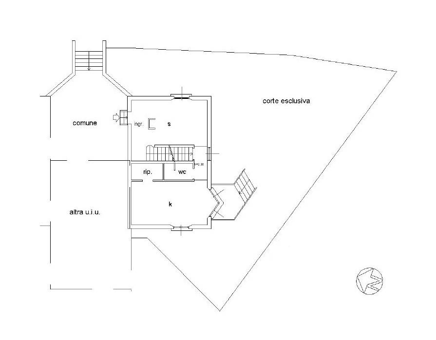 - Piano rialzato: luminoso soggiorno, cucina abitabile e bagno di servizio.