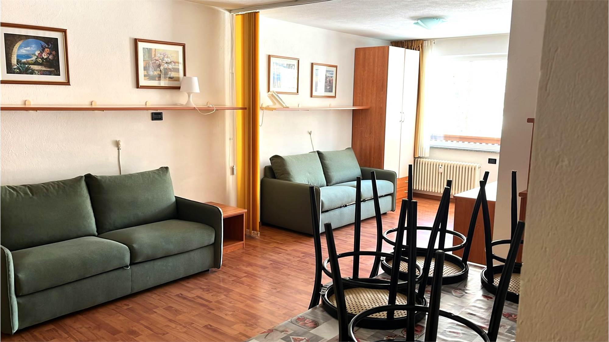 L’immobile è organizzato in modo funzionale: si tratta di un monolocale spazioso dotato di due divani letto, ideale per ospitare comodamente più persone. La disposizione degli ambienti consente di vivere la zona giorno e notte in maniera pratica e accogliente.